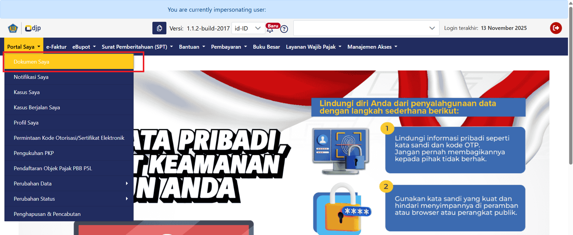 - Pilih Menu Portal Saya → Dokumen Saya.