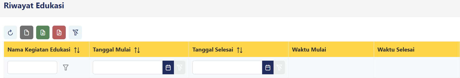 - Daftar Permohonan Edukasi: untuk melihat daftar permohonan edukasi yang pernah diajukan.