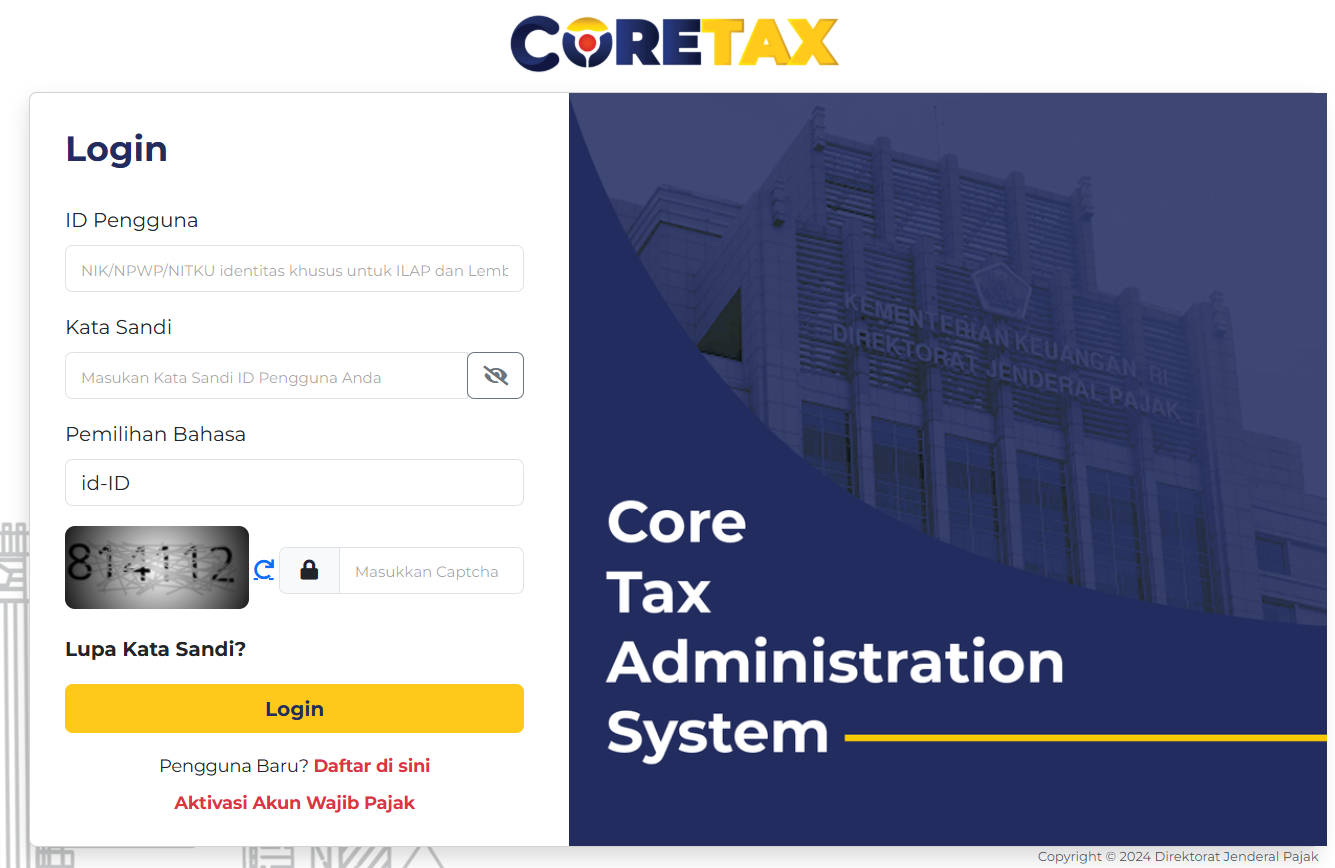- Mula-mula login ke Coretax DJP.