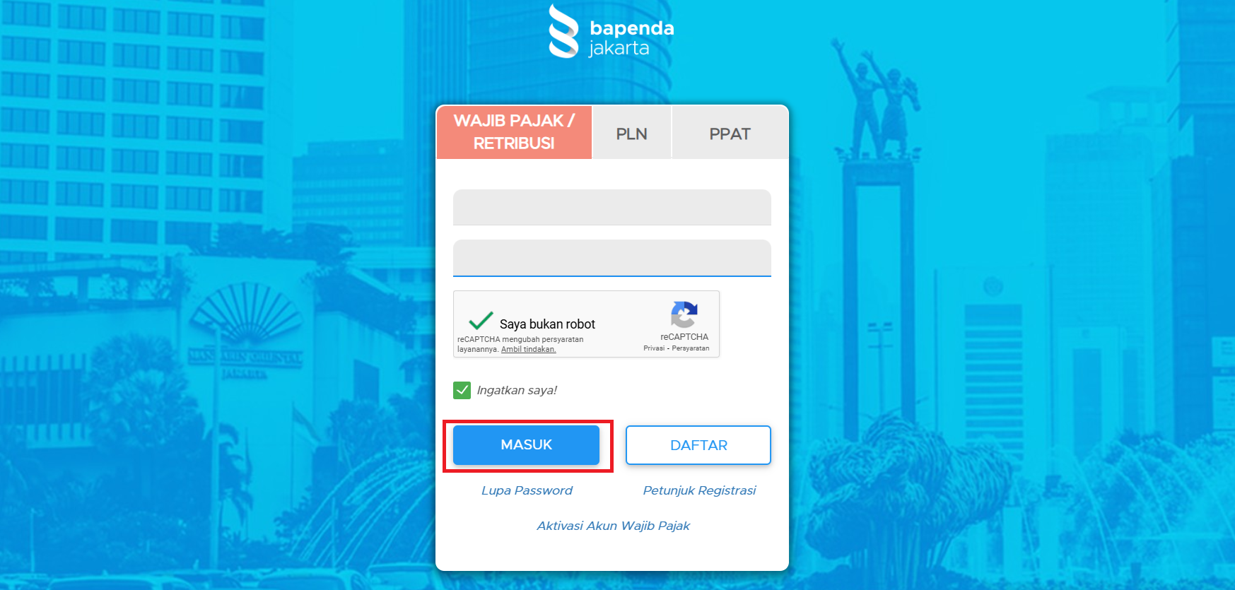- Login ke akun wajib pajak pada Pajak Online Jakarta.