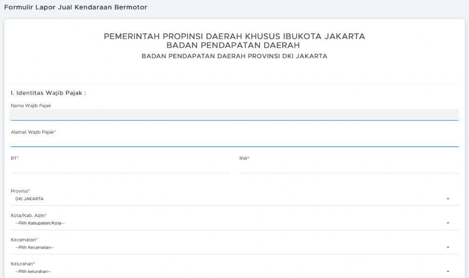 - Isi formulir Lapor Jual Kendaraan Bermotor.