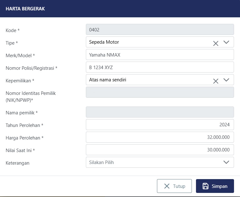 Apabila harta bergerak yang dimiliki wajib pajak pada akhir tahun pajak berasal dari utang, misalnya seperti kendaraan bermotor yang masih dicicil, maka terdapat dua kewajiban yang harus dipenuhi saat mengisi SPT Tahunan PPh Orang Pribadi di Coretax. Pertama, wajib pajak harus melaporkan harta bergerak tersebut pada L1 Bagian A. Kedua, wajib pajak juga wajib mencantumkan sisa utang yang masih harus dilunasi pada L1 Bagian B sebagai bagian dari pelaporan utang pada akhir tahun pajak.