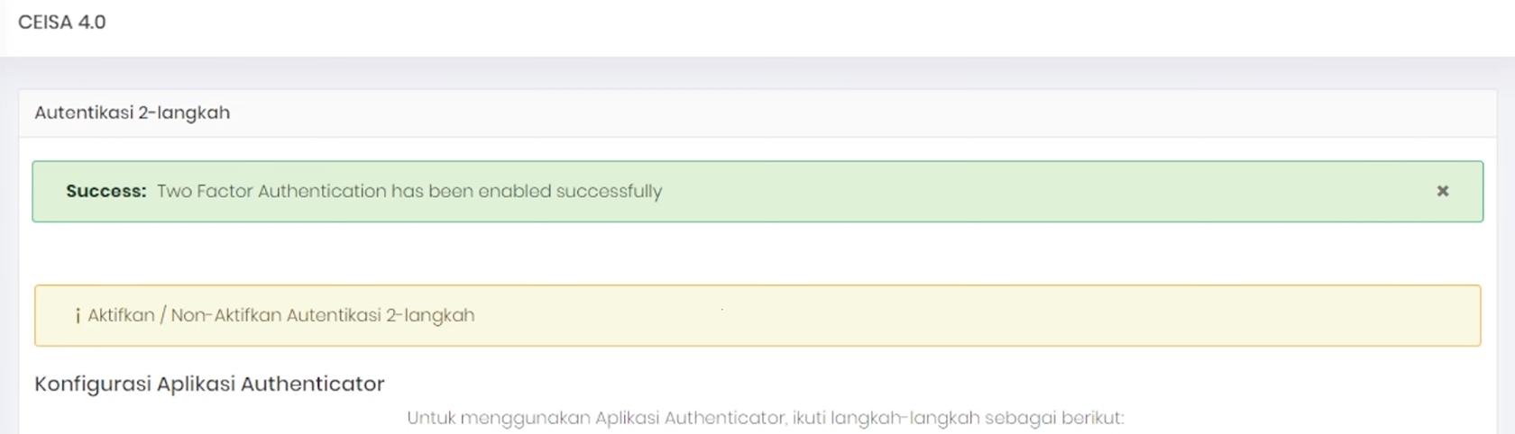 Sebagai informasi, setelah mengaktifkan MFA, maka setiap kali login ke portal CEISA 4.0, wajib pajak akan diminta untuk memasukkan 6 digit kode verifikasi dari Google Authenticator.