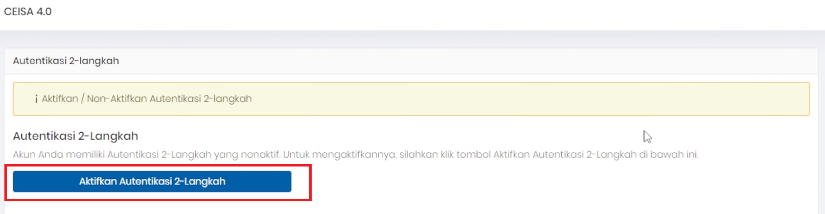 - Pada halaman pengaturan MFA, klik Aktifkan Autentikasi 2-Langkah.