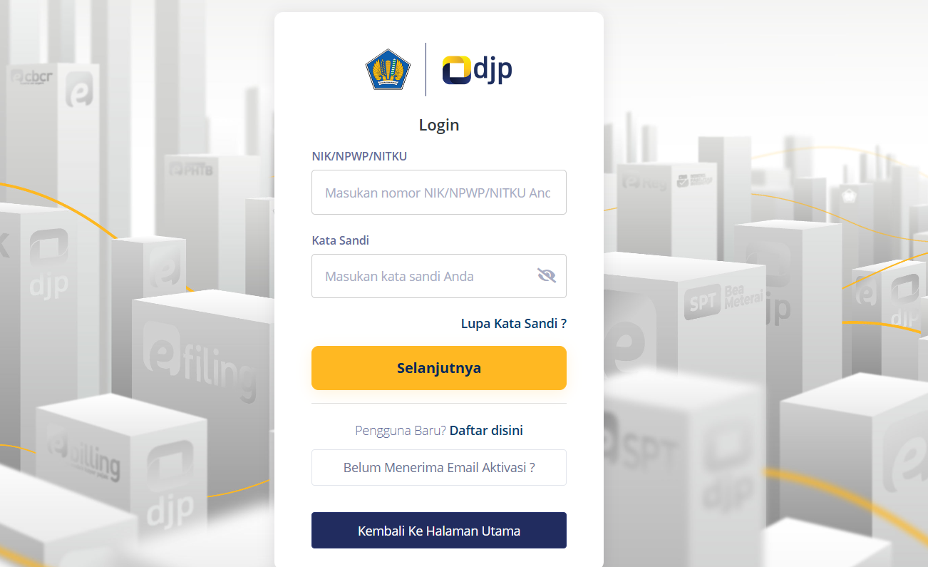 - Mula-mula login akun DJP Online.