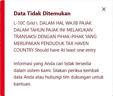 Terdapat error sistem yang seringkali dialami wajib pajak ketika mengisi Lampiran 10, khususnya pada Lampiran 10 C. Yaitu walaupun tidak melakukan transaksi dengan pihak yang merupakan penduduk tax heaven county, tetap diwajibkan oleh sistem untuk mengisi Lampiran 10 C ketika ingin melaporkan SPT PPh Badan.