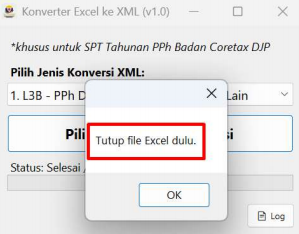 Terdapat beberapa hal yang perlu diperhatikan oleh wajib pajak ketika melakukan proses konversi file Excel ke format XML untuk pengisian SPT PPh Badan di Coretax, yaitu. Pertama, ketika melakukan ekstraksi file RAR/ZIP, jangan memisahkan file pendukung dari foldernya. Kedua, gunakan template yang benar dan pastikan struktur kolom tidak berubah. Ketiga, pastikan file excel sudah tertutup sebelum menekan tombol konversi. Penting untuk diketahui oleh wajib pajak, meskipun aplikasi mampu mengonversi sampai ratusan ribu baris, tetapi kapasitas penerimaan Coretax ketika import bisa jadi terbatas. Agar proses berjalan dengan lancar, lakukan konversi dan upload secara bertahap.