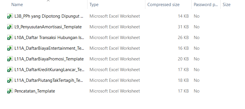Setelah mengunduh file, lakukan proses ekstrak file dengan cara klik kanan pada folder KonverterXML_SPTBadan. Untuk wajib pajak yang akan menggunakan file Excel, setelah mengekstrak file, buka folder Template Excel SPT Tahunan PPh Badan, kemudian file Excel converter XML akan muncul. Terdapat 8 template yang tersedia pada folder, yaitu: