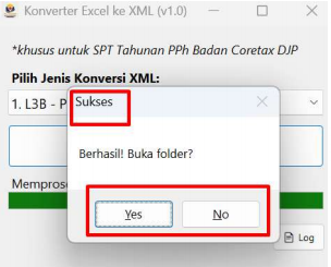 4. Apabila konversi berhasil, akan muncul notifikasi Sukses yang disertai dengan pilihan membuka folder tempat penyimpanan hasil konversi.