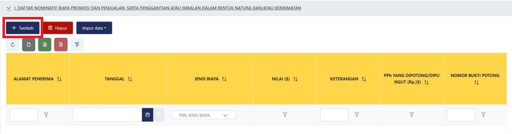Jika memilih pengisian secara manual, maka akan ditampilkan formulir penambahan data yang harus dilengkapi wajib pajak. Berikut panduan pengisian formulir sehubungan dengan biaya promosi: