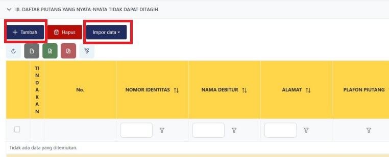- Kolom Piutang yang Nyata-Nyata Tidak dapat Ditagih diisi dengan jumlah piutang tak tertagih kepada pihak debitur yang bersangkutan.